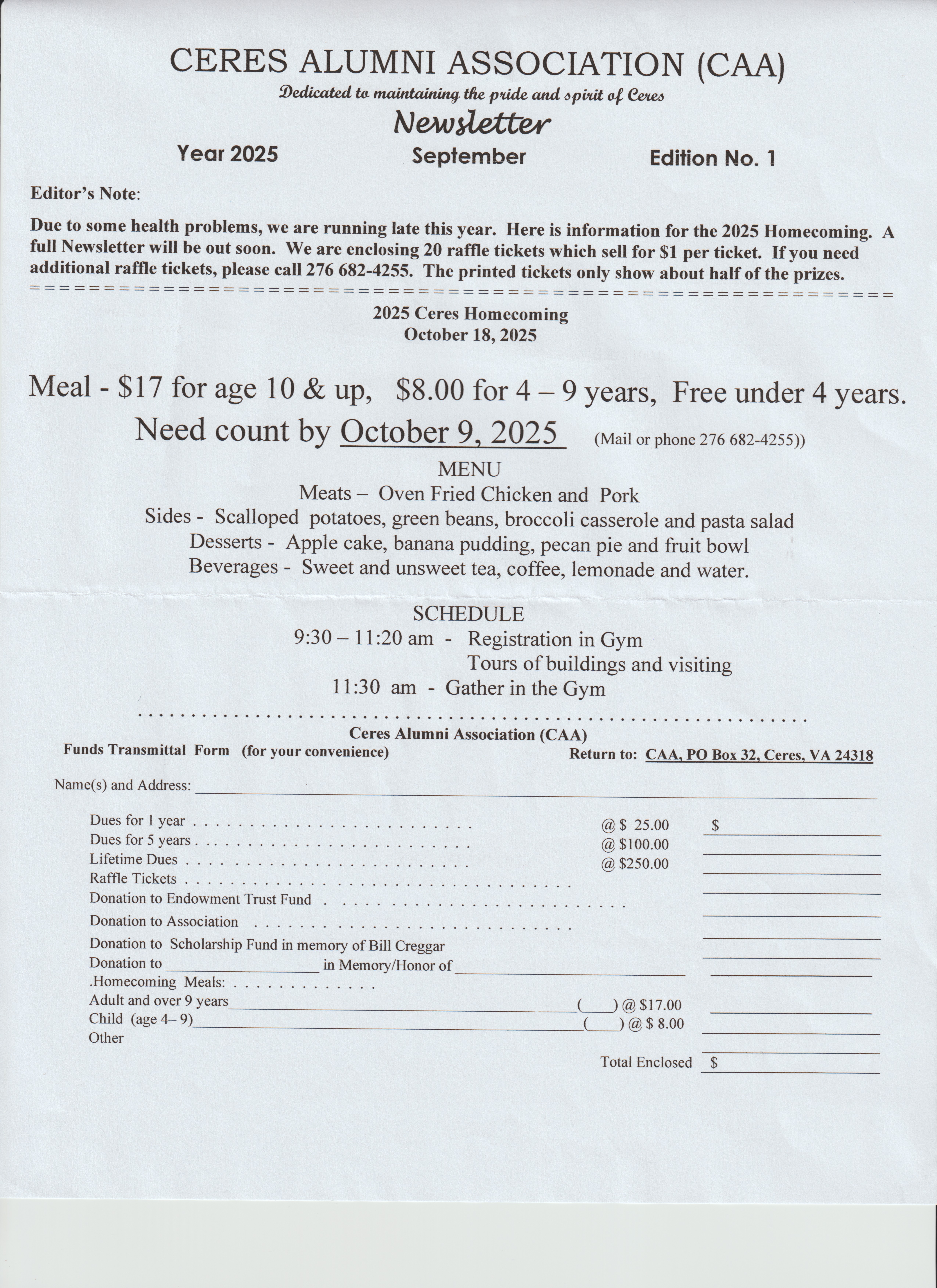 Sponsored by CAA and Ceres Vol. Fire Dept.